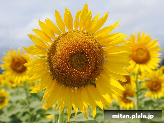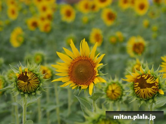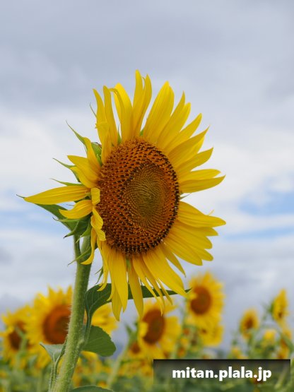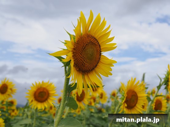 土日は台風で天気が悪そうなので、その前に座間のひまわりまつにに。単線の無人駅相模線入谷駅から15分歩いてひまわり畑に。残念ながら天気は悪く、曇り時々雨。一瞬の雲の隙間をなんとか写真に無理やり絡めて撮影。