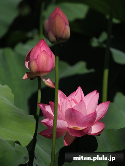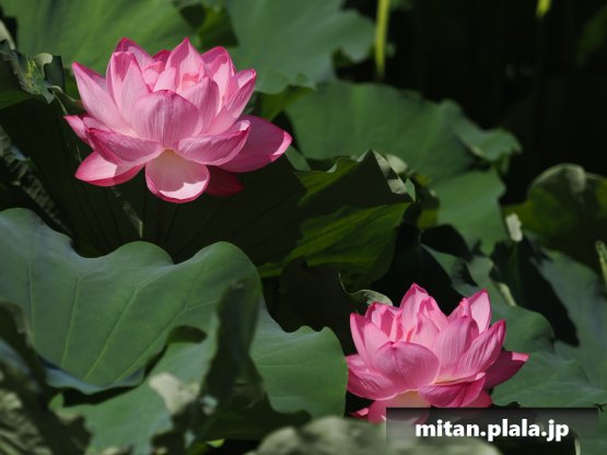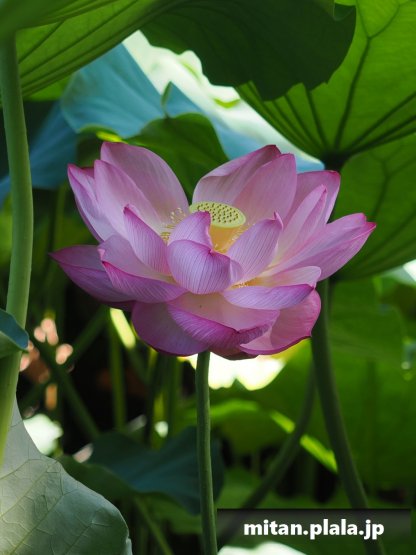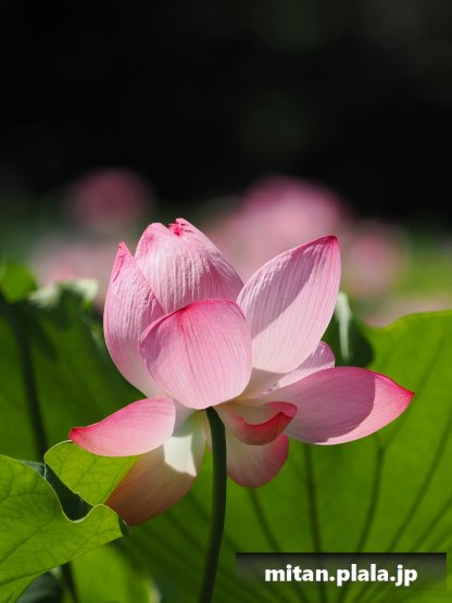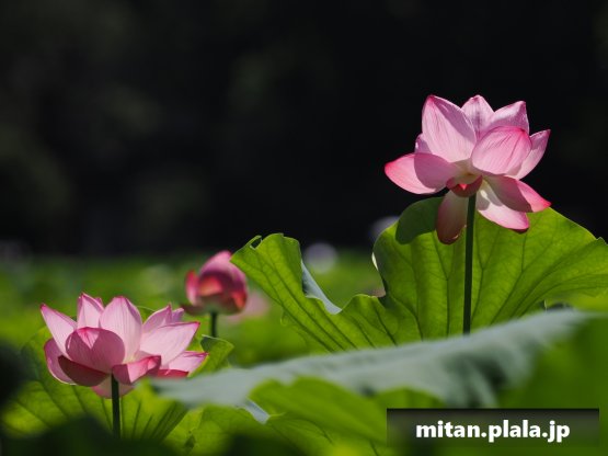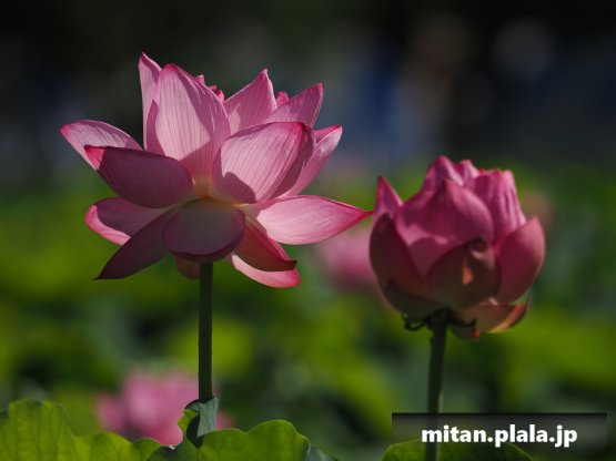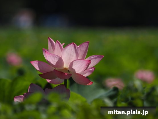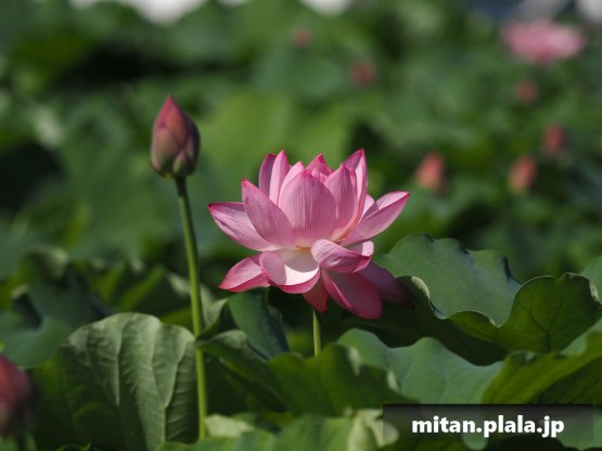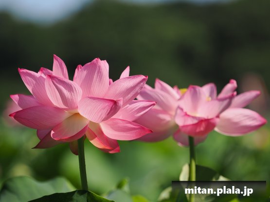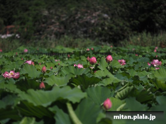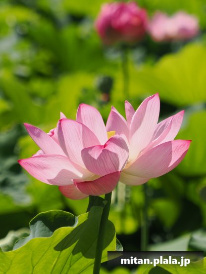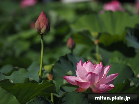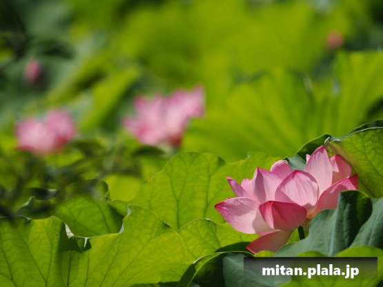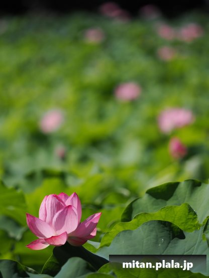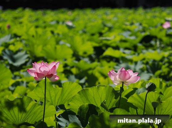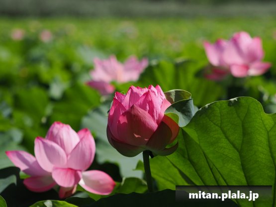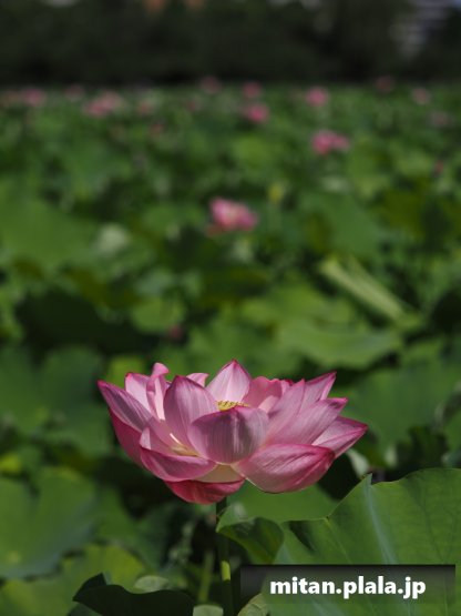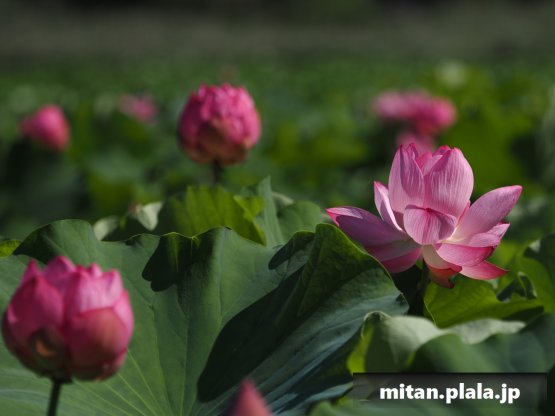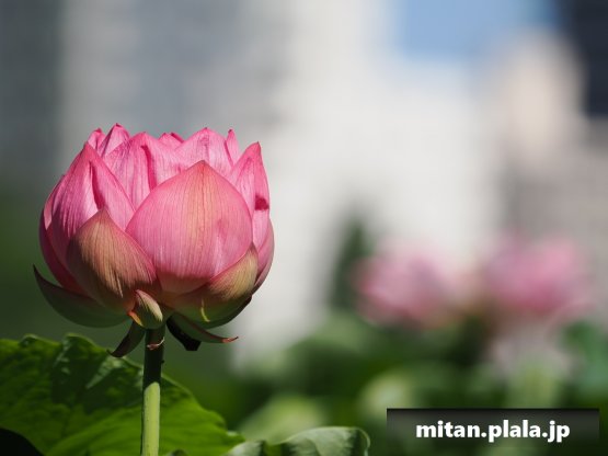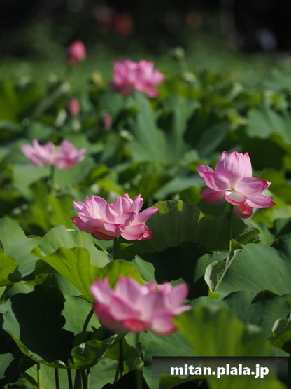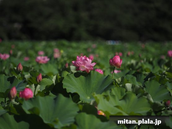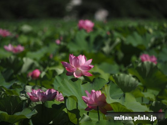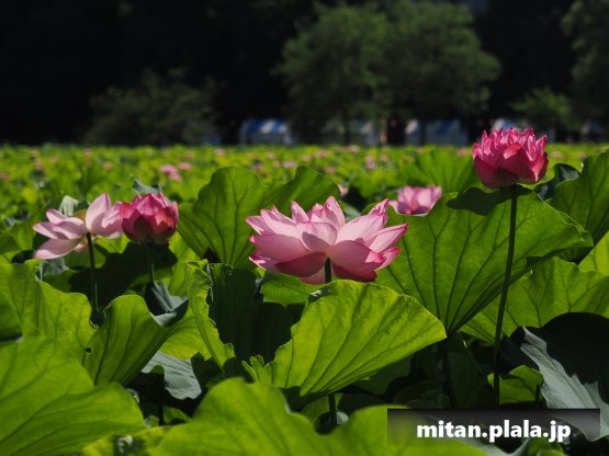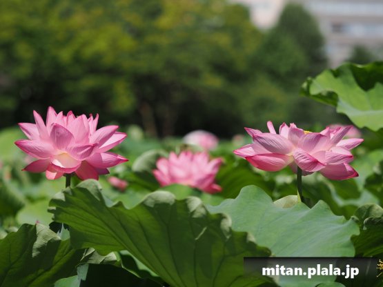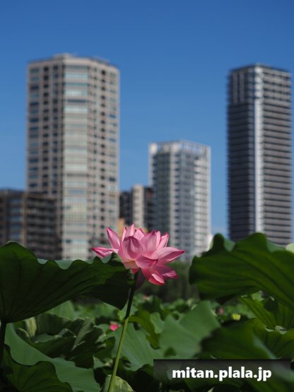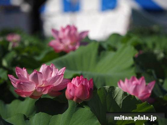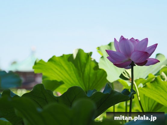 早起きしたおかげでハスは沢山開花してて満足。天気も良くて青空背景に撮れたのも良かった。
