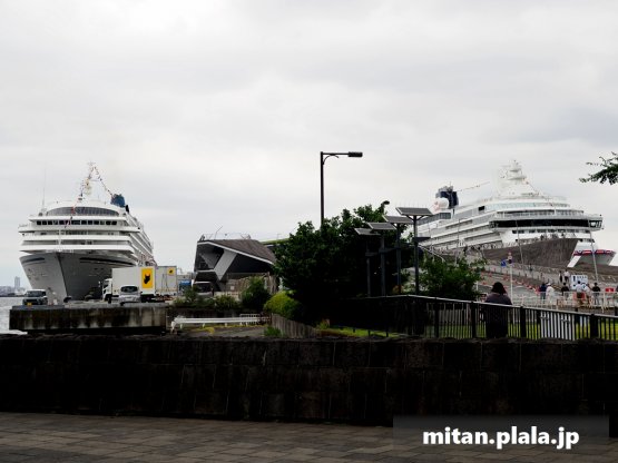 横浜港の大さん橋の両サイドに、飛鳥IIと飛鳥IIIが停泊しているというとてもレアな状況に、会社の昼休み+αで撮影に。